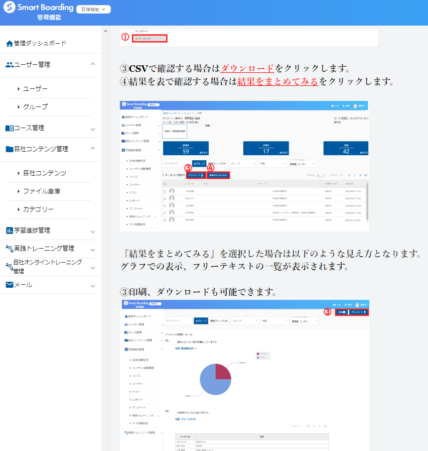 社員向けの意識調査やアンケートは、従来メールとExcelを使って対応していましたが、 Smart Boardingのアンケート機能を活用することで、効率的に社員の意見集約や注意喚起等に役立てています。