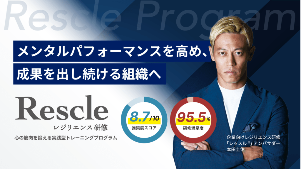 「レッスル(Rescle)」とは、レジリエンス(Resilience)とマッスル(Muscle)を掛け合わせた造語で、「心の筋肉を鍛える」という意味が込められています。